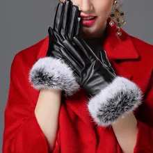 Warm Winter Gloves Female Leather Gloves Rabbit ...
