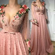 Prom-Dresses Flower Evening-Gowns Long-Sleeves ...
