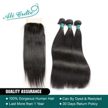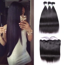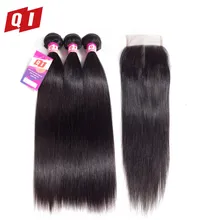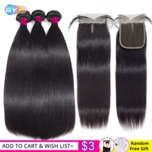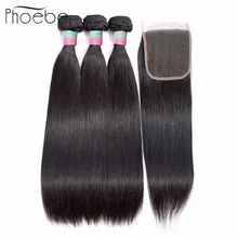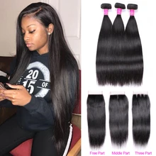 Brazilian Straight Hair Bundles With Closure 3 Pcs ...