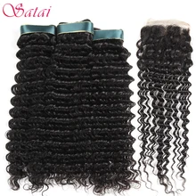Satai Deep Wave 3 Bundles With Closure Human Hair ...