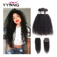 Yyong Brazilian Kinky Curly Bundles With Closure 3 ...