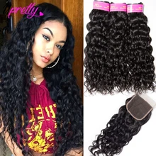 Upretty Hair Water Wave Bundles With Closure Wet ...