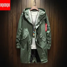 Long Trench Coat Jacket Men Cotton Autumn Spring ...