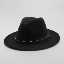 Women Men Wool Fedora Hat With Punk Rivet Ribbon ...