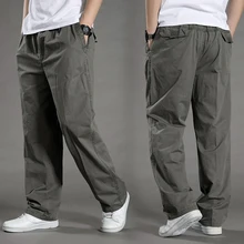 Men Plus Size Pants 6XL Solid Baggy Loose Elastic ...