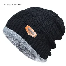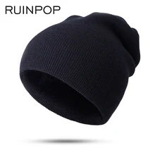 2018 New Brand Solid Color Knit Beanie Hat Men's ...