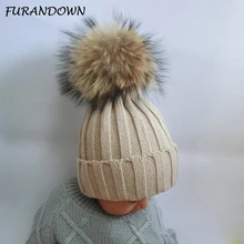 Winter spring Girls Boys Fur Pom Pom Beanies Hats ...